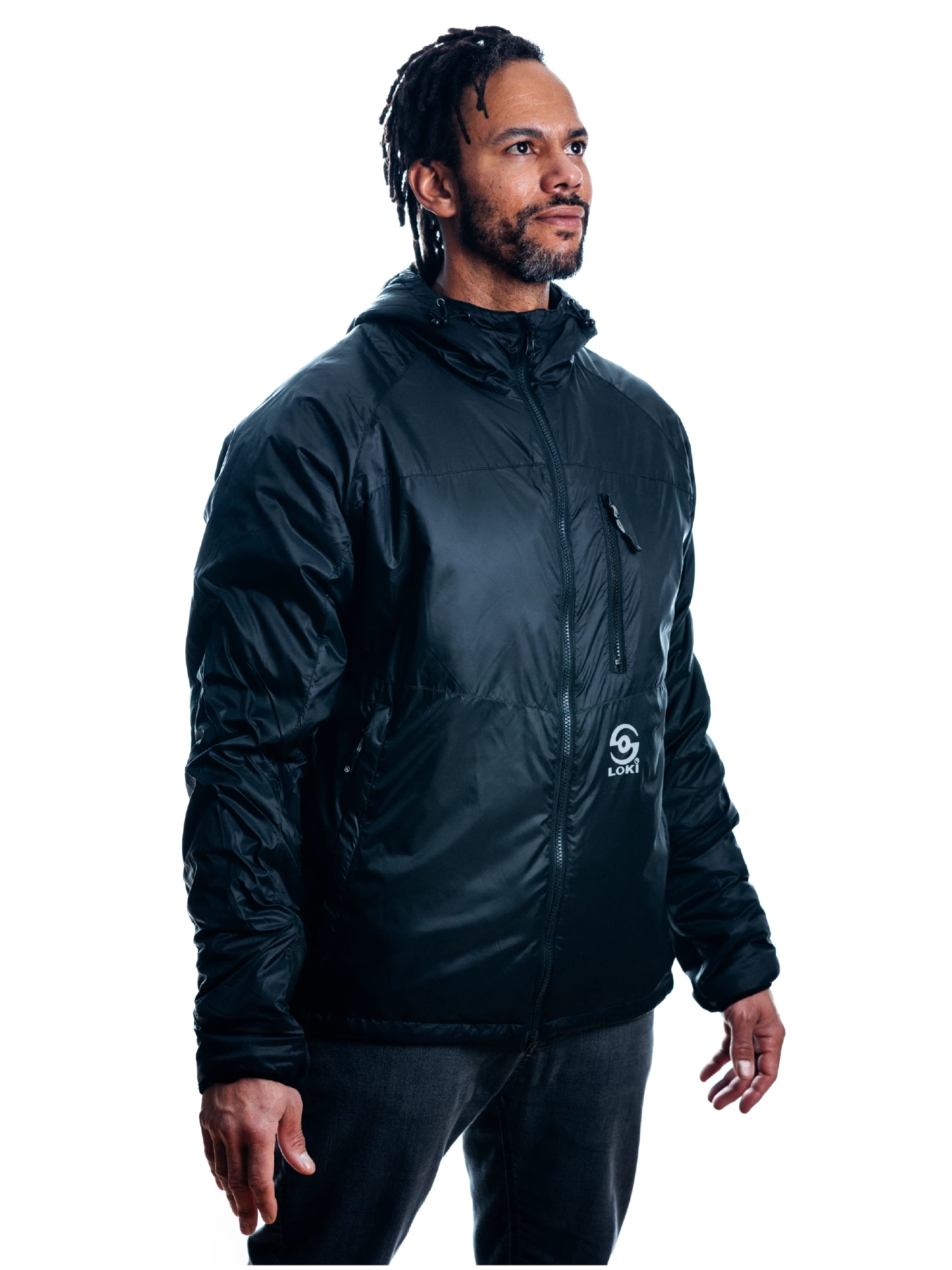 The Canyon Puffy is our new favorite jacket. The Canyon utilizes our patented Pro-Cuff and Face Shield features to increase functionality, while eliminating the bulky feeling of gloves or gaiters in your pockets! The Canyon’s sleek look and low profile, strikes the perfect balance of lightweight yet warm and keeps you protected from the elements with its weather resistant fabric. It is best worn alone on most spring and fall days but layers well with other Loki products. It’s ability to pack away into tight spaces makes it perfect for traveling, climbing or riding anywhere, anytime.