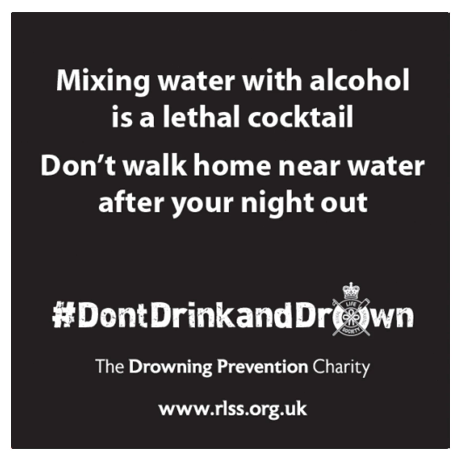 Don’t Drink and Drown is a national campaign that warns drinkers to steer clear of walking by or entering water when under the influence of alcohol.
