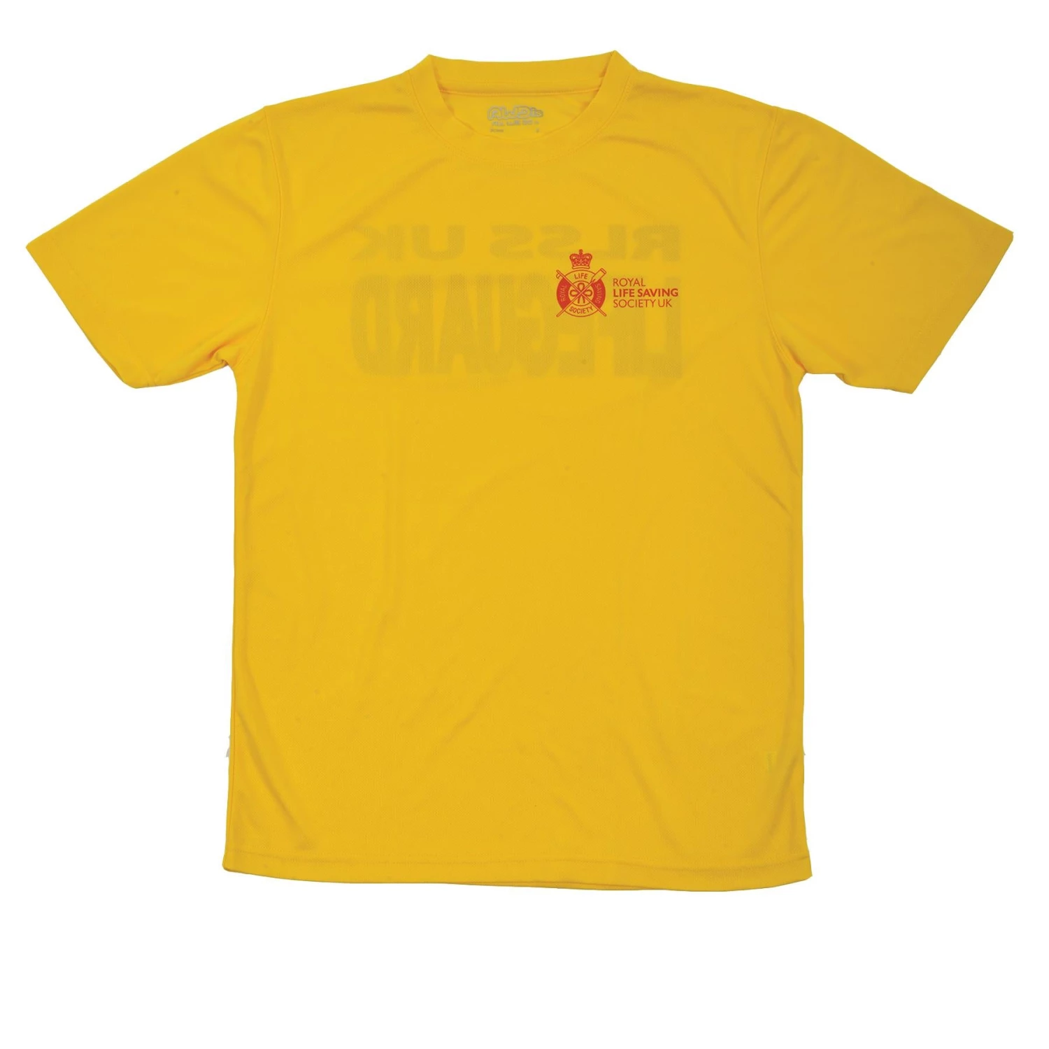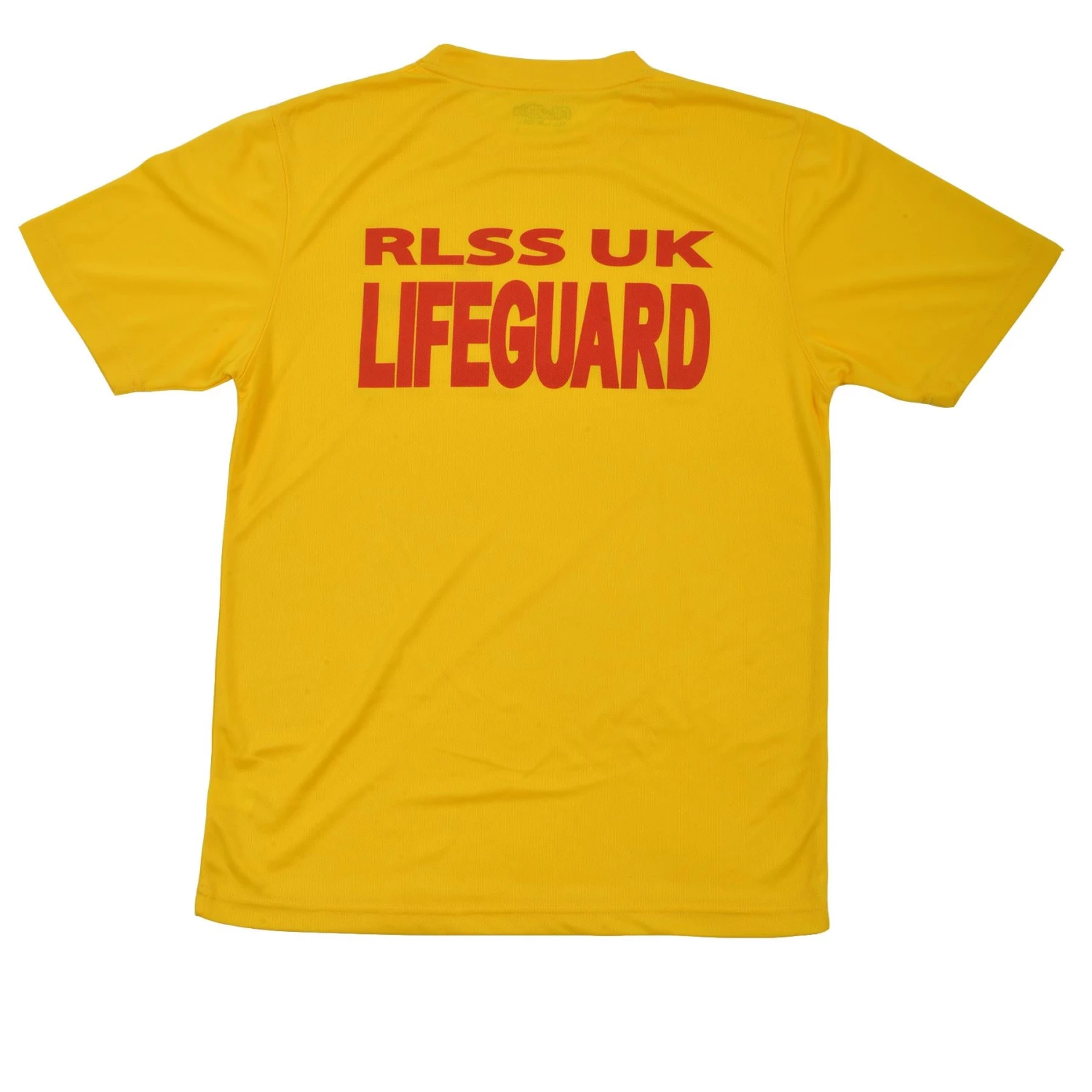 It has an RLSS UK logo on the front and RLSS UK LIFEGUARD printed in red on the back.